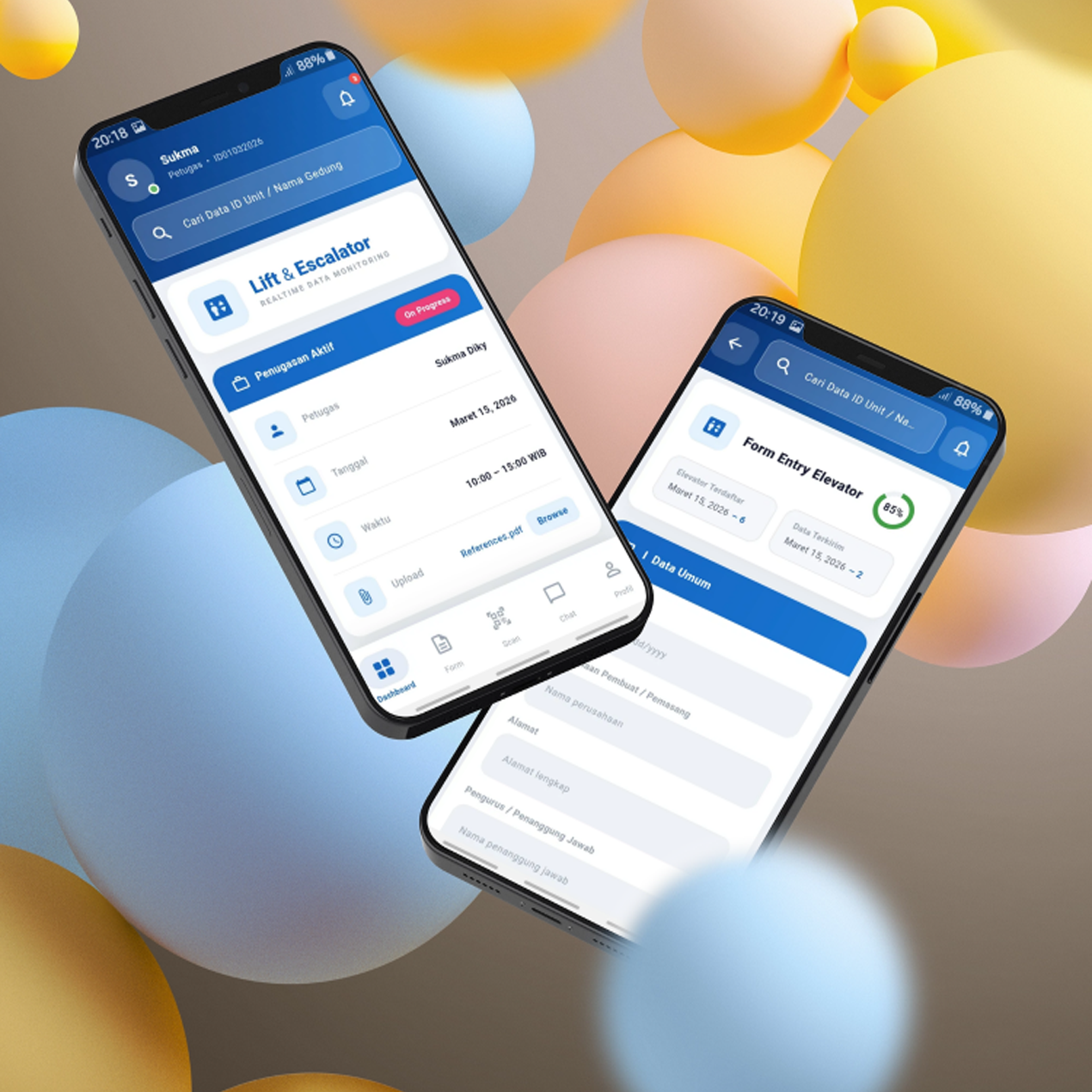 Mobile Aplikasi Form Entry Data Riksa UjiPeta Interaktif Sebaran Aset (WebGIS): Visualisasi lokasi unit lift dan eskalator di berbagai gedung/wilayah menggunakan koordinat geografis. Memudahkan identifikasi titik panas (area dengan banyak unit) atau area yang memerlukan perhatian khusus. Pemindai QR Code Unit: Integrasi kamera ponsel untuk memindai kode QR yang tertempel di unit. Sekali pindai, teknisi langsung mendapatkan profil lengkap unit tanpa perlu input manual. Inventory Database & Lifecycle Tracking: Penyimpanan data teknis lengkap setiap unit (merek, kapasitas, tahun pemasangan) serta riwayat pemeliharaan dari awal hingga akhir masa pakai.E-Form Checklist Riksa Uji: Formulir digital yang disesuaikan dengan standar regulasi K3 Kemnaker. Mendukung input data teknis, catatan temuan, dan hasil uji beban secara sistematis.Sistem Monitoring Status SLO (Sertifikat Layak Operasi): Fitur pelacakan masa berlaku sertifikat K3 secara otomatis. Menampilkan indikator warna (Hijau: Aktif, Kuning: Segera Habis, Merah: Expired).Evidence Capture (Foto & Lokasi): Fitur untuk melampirkan foto temuan kerusakan atau bukti pemeriksaan langsung dari kamera, lengkap dengan watermark waktu dan koordinat GPS untuk mencegah manipulasi data.Smart Warning & Notification Alert: Notifikasi otomatis melalui email atau dasbor untuk mengingatkan jadwal pemeriksaan rutin atau pembaruan sertifikat sebelum jatuh tempo.Tanda Tangan Digital (Digital Signature): Proses pengesahan hasil pemeriksaan di tempat oleh teknisi dan perwakilan gedung langsung melalui layar ponsel.Analitik & Pelaporan Eksekutif: Panel grafik yang menyajikan data statistik kerusakan, performa teknisi, dan tingkat kepatuhan regulasi di seluruh aset yang dikelola.Sinkronisasi Data Real-Time: Data yang diinput di lapangan otomatis terkirim ke database pusat (WebGIS) saat tersedia koneksi internet, menghilangkan proses input ulang di kantor.Manajemen Dokumen Digital: Penyimpanan terpusat untuk salinan digital izin operasional, laporan pemeriksaan, dan dokumen legalitas lainnya yang dapat diunduh kapan saja.Status Aktivasi QR Code: Fitur untuk mengaktifkan atau memperbarui status operasional unit pada label QR setelah inspeksi dinyatakan selesai dan layak. -